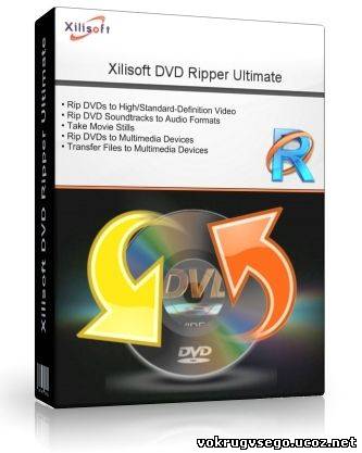 Xilisoft DVD Ripper Ultimate - программка для копирования DVD-дисков с возможность конвертирования содержимого в надлежащие аудио и видео файлы типа AVI, MPEG, WMV, DivX, MP4, H.264, RM, MOV, M4V, XviD, 3GP, MP3, WMA, WAV, RA, M4A, AAC, AC3, OGG и т.д.